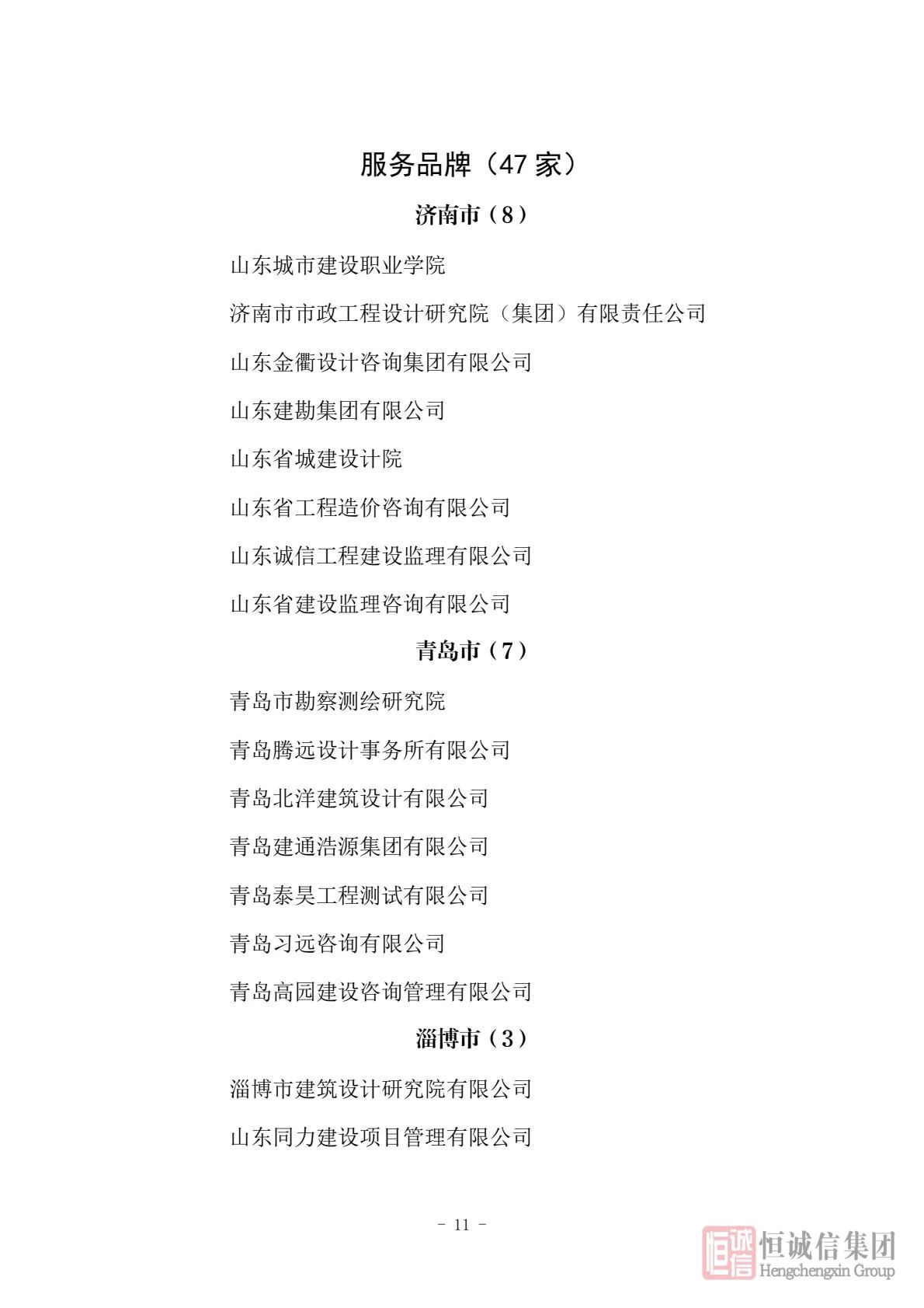 “齊魯建造” 品牌遴選工作旨在推動山東省建筑業(yè)品牌化、高端化發(fā)展,通過樹立行業(yè)標桿,引導企業(yè)加強技術創(chuàng)新、管理創(chuàng)新與品質創(chuàng)新,進而提升“齊魯建造” 品牌在全國乃至全球的競爭力。本次遴選面向全省建筑業(yè)全產業(yè)鏈,涵蓋企業(yè)、服務、部品化建材產品、區(qū)域等類別。恒誠信在眾多申報企業(yè)中脫穎而出,充分彰顯了其在工程咨詢領域的領先地位。