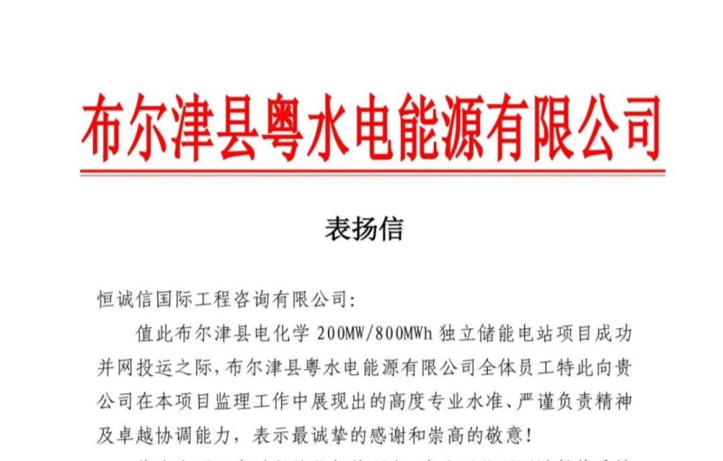 北京恒誠(chéng)信獲國(guó)能龍?jiān)措娏夹g(shù)工程有限責(zé)任公司表?yè)P(yáng)