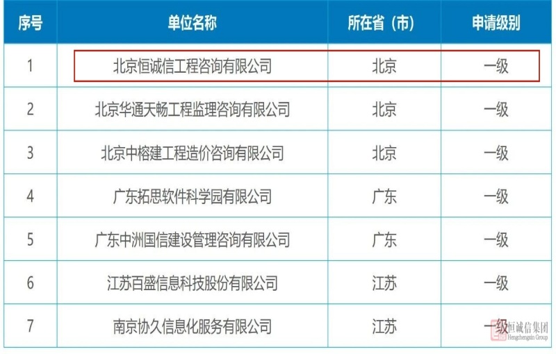 實(shí)力認(rèn)證 | 恒誠(chéng)信斬獲軟件造價(jià)評(píng)估一級(jí)資質(zhì)