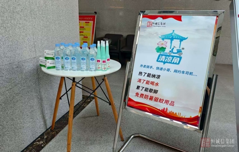 近日,恒誠信國際公司黨支部在新城發(fā)展大廈B座一樓大廳精心設置了“清涼角”,為炎炎夏日里堅守在戶外崗位的工作者們送去了一份貼心關懷?!扒鍥鼋恰彪m小,卻飽含著濃濃的暖意?,F(xiàn)場整齊擺放著礦泉水、藿香正氣水、花...